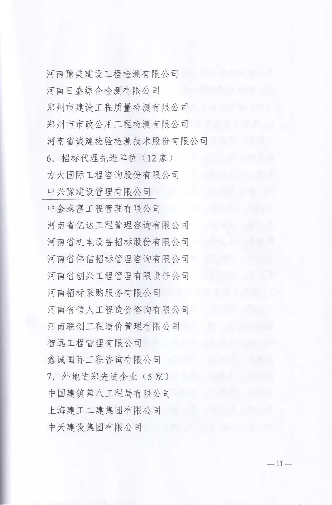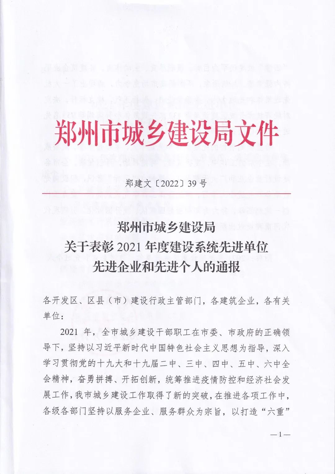 近日,鄭州市城鄉(xiāng)建設(shè)局發(fā)布了《關(guān)于表彰2021年度建設(shè)系統(tǒng)先進(jìn)單位先進(jìn)企業(yè)和先進(jìn)個人的通報》,中興豫建設(shè)管理有限公司被評為“2021年度招標(biāo)代理先進(jìn)單位”、“2021年度造價咨詢行業(yè)先進(jìn)單位”,我公司員工韋曉東被評為“優(yōu)秀總監(jiān)”、劉東生被評為“優(yōu)秀注冊監(jiān)理工程師”、賈世軍被評為“優(yōu)秀造價工程師”。