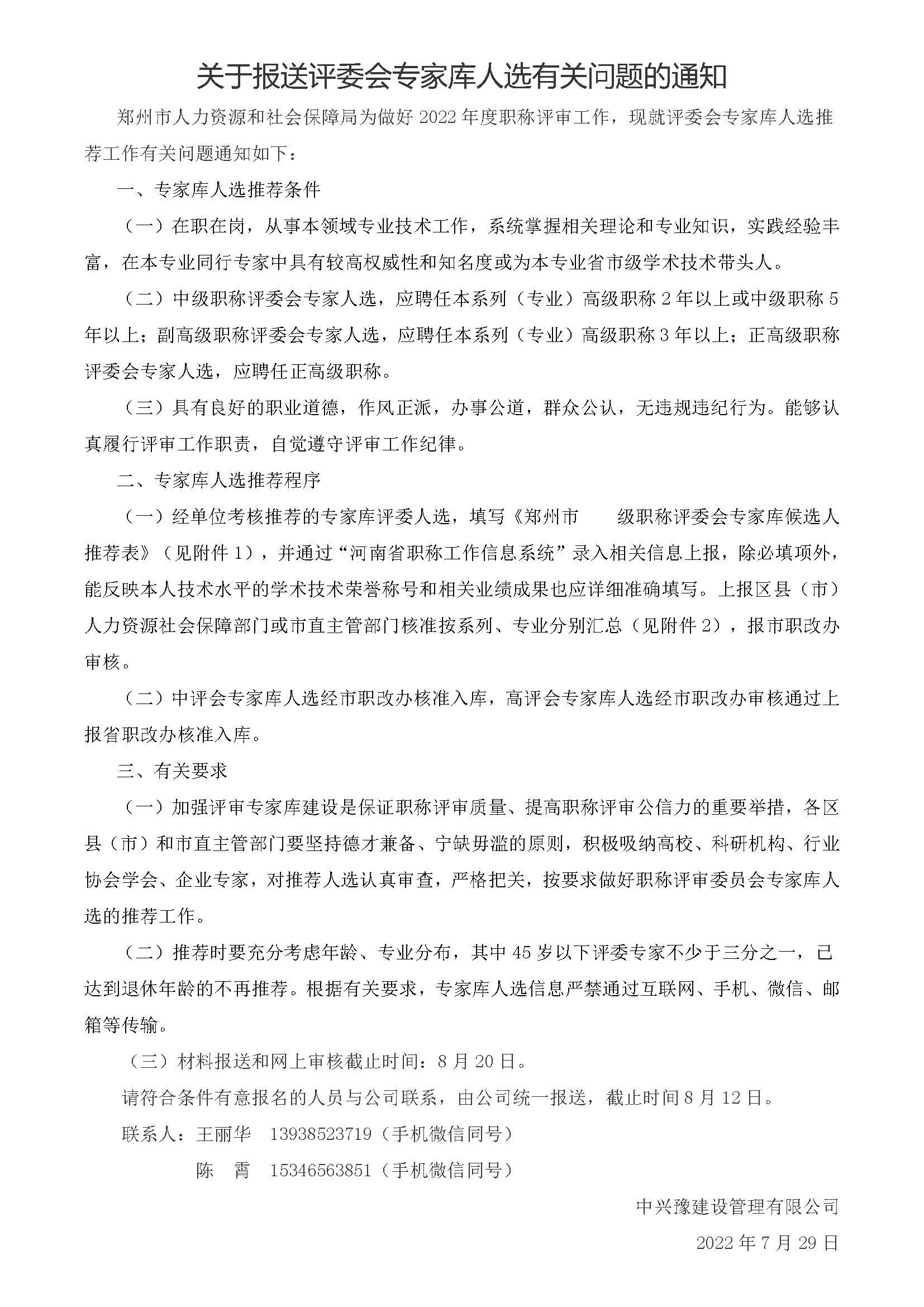 關(guān)于報送評委會專家?guī)烊诉x有關(guān)問題的通知
