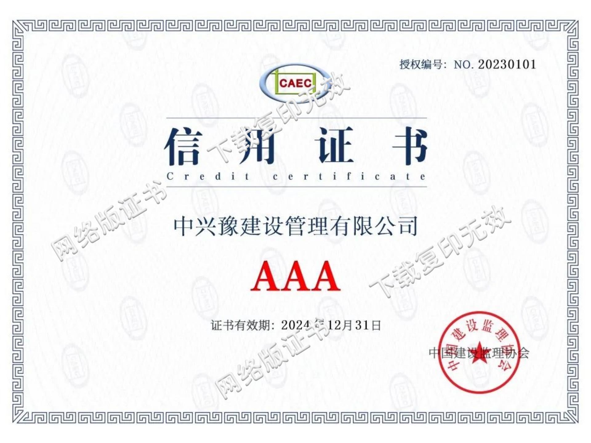 近日,中國(guó)建設(shè)監(jiān)理協(xié)會(huì)公布了《中國(guó)建設(shè)監(jiān)理協(xié)會(huì)關(guān)于公布單位會(huì)員信用評(píng)估結(jié)果(第一期)的通告》(中建監(jiān)協(xié){2023}27號(hào)),中興豫建設(shè)管理有限公司獲評(píng)單位會(huì)員信用評(píng)估AAA級(jí)。