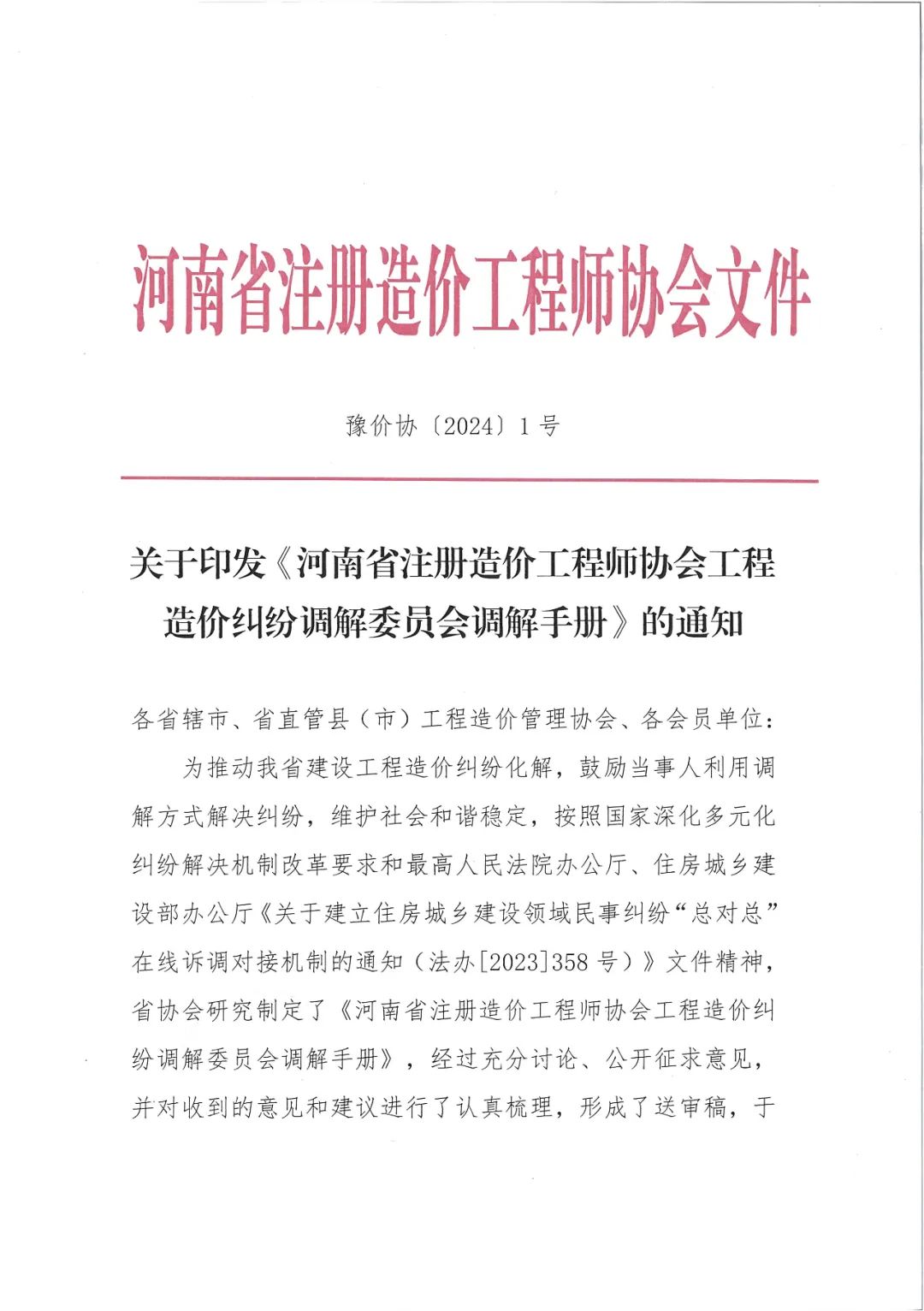 關(guān)于印發(fā)《河南省注冊(cè)造價(jià)工程師協(xié)會(huì)工程造價(jià)糾紛調(diào)解委員會(huì)調(diào)解手冊(cè)》的通知