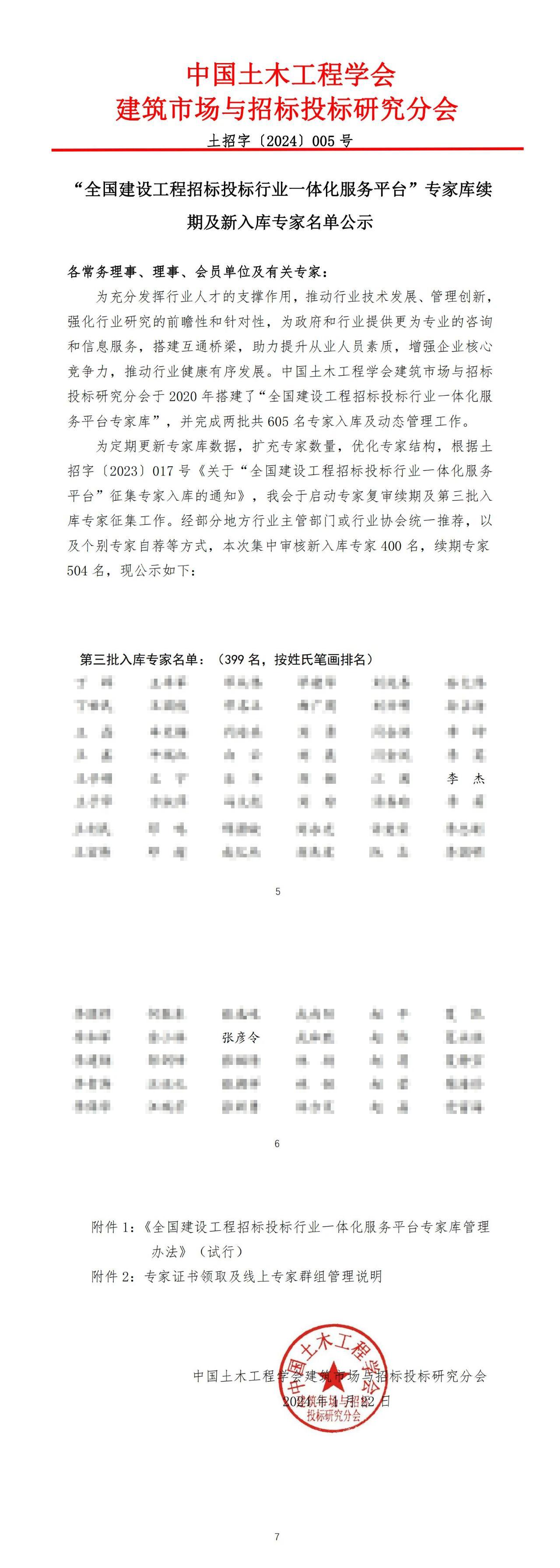 近日,中國土木工程學會建筑市場與招標投標研究分會公布了“全國建設工程招標投標行業(yè)一體化服務平臺”專家?guī)炖m(xù)期及新入庫專家名單的通知,我公司李杰、張彥令2名專家順利入圍專家?guī)臁?/span>