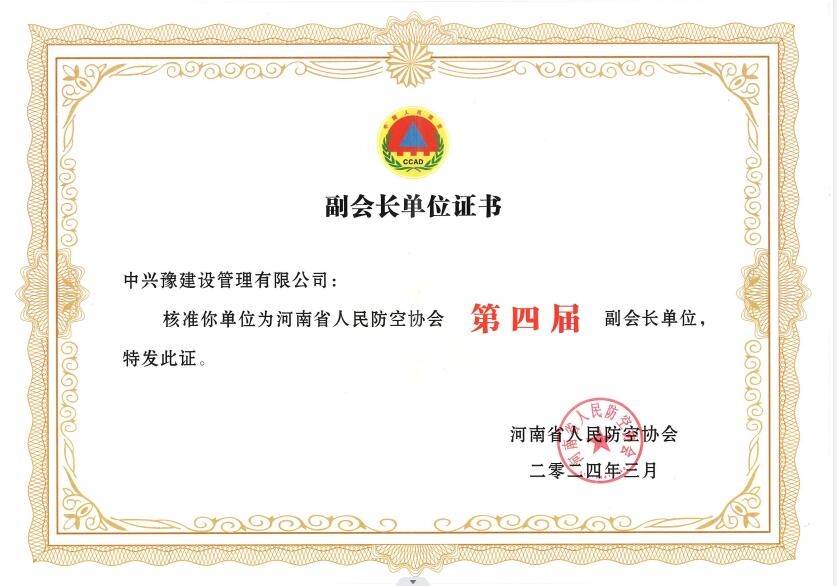 近日,河南省人民防空協(xié)會(huì)頒發(fā)了關(guān)于優(yōu)秀會(huì)員單位及先進(jìn)工作者的榮譽(yù)證書,我公司核準(zhǔn)為河南省人民防空協(xié)會(huì)第四屆副會(huì)長單位、2023年度人防行業(yè)先進(jìn)單位,工程監(jiān)理中心總經(jīng)理韋曉東榮獲2023年度人防工作先進(jìn)個(gè)人榮譽(yù)稱號。