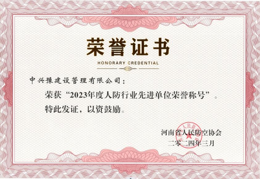 中興豫建設(shè)管理有限公司獲此榮譽(yù),是行業(yè)協(xié)會(huì)對我公司工作的高度認(rèn)可與肯定,在今后的發(fā)展中,我們將再接再厲,繼續(xù)發(fā)揮示范引領(lǐng)作用,當(dāng)好“排頭兵”,秉持“科學(xué)公正高效、至誠服務(wù)社會(huì)”的經(jīng)營理念,積極踐行誠信自律的優(yōu)良作風(fēng),不斷提升行業(yè)服務(wù)水平,為促進(jìn)我省人防行業(yè)高質(zhì)量發(fā)展貢獻(xiàn)自身力量!