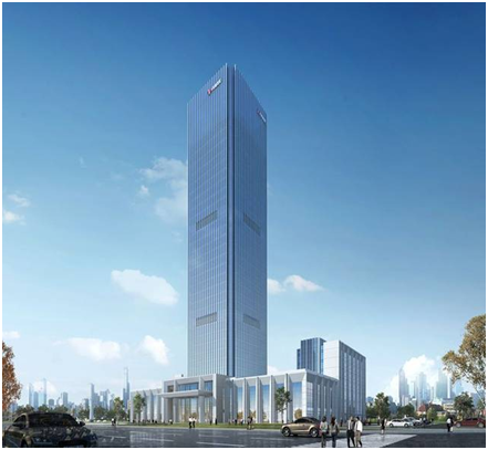 中國雙匯新總部項目選址漯河市城鄉(xiāng)一體化示范區(qū)起步區(qū)核心地帶,緊鄰沙澧河景區(qū)和中央商務(wù)公園,交通便利,環(huán)境優(yōu)美。新總部規(guī)劃用地面積121畝,計劃工期3年,預(yù)計完工時間為2022年12月,總建筑面積約 112000 平方米, 其中地上建筑面積約 94200 平方米,地庫建筑面積約 17800 平方米(包含地下室人防面 積約 5700 平方米)。主樓地上 36 層,地下室 3 層,裙房 3 層;副樓地上 7 層,地下室 1 層,為超高層建筑,建筑總高度168米。