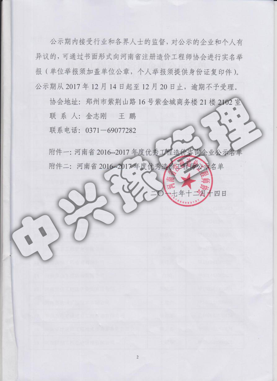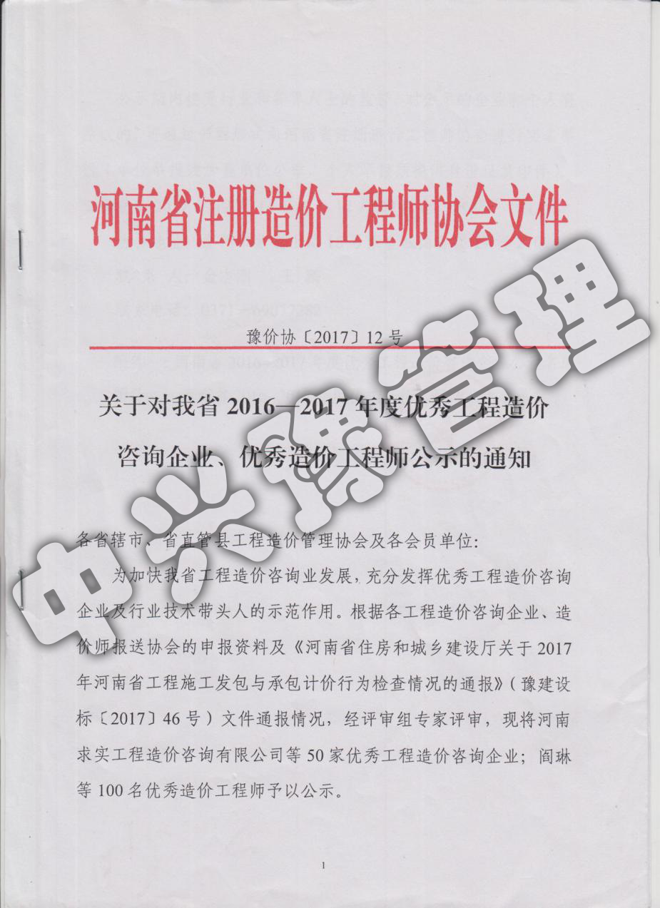 2016-2017年優(yōu)秀造價企業(yè)-公司榮譽