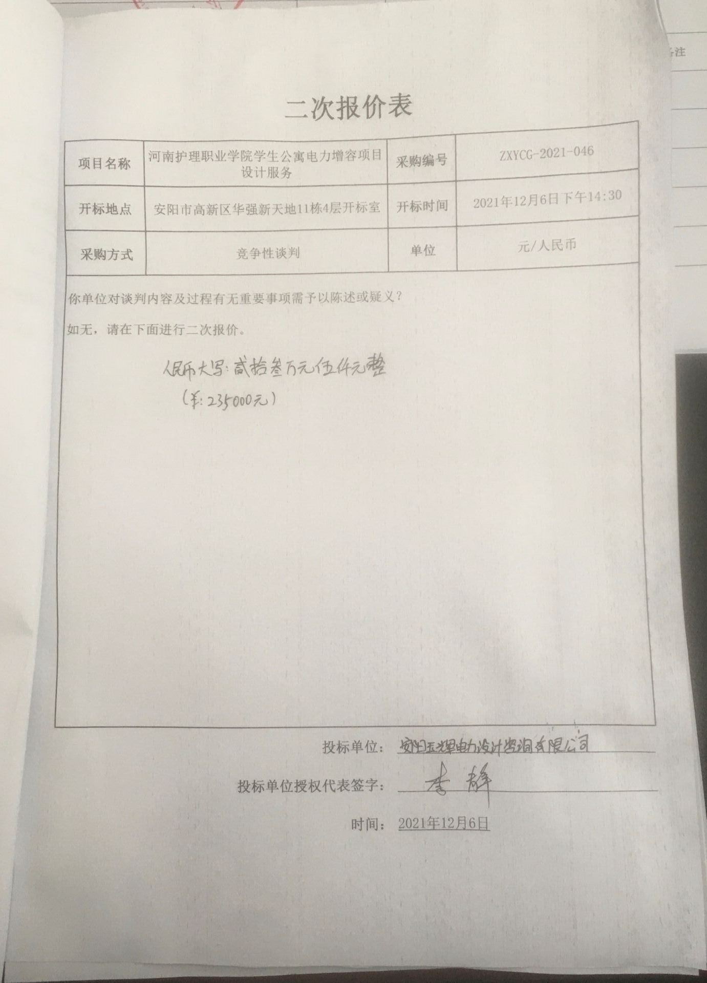 中興豫建設管理有限公司受河南護理職業(yè)學院的委托,就河南護理職業(yè)學院學生公寓電力增容項目設計服務進行競爭性談判采購,現(xiàn)將本次采購結(jié)果公告如下: